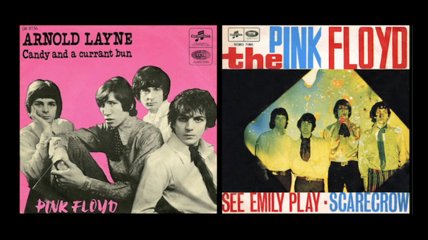 Syd Barrett, Roger Waters, Richard Wright og Nick Mason sin første singel Arnold Layne kom ut i mars 1967, med Candy and a Currant Bun som b-side. Singelen havnet innafor topp 20 i hjemlandet, og ble høvelig populær også i Nederland. Både for- og baksida ble skrevet av Syd Barrett. Teksten på Arnold Layne handler om en transvestitt som har som hobby å stjele dameklær og undertøy fra klessnorer.