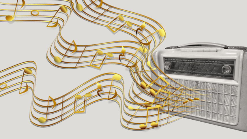 Jeg var 15 år gammel, og jeg hadde flyttet på hybel for å gå på skole borte hjemmefra. Jeg har skrevet tidligere om min følgesvenn på bildet over. Den gule, røde og beige radioen, som på dette bildet må finne seg i å bli presentert i sort/hvitt til fordel for de gullfargede notelinjene. Radioen var en god kompis når jeg skulle nyte mitt forholdsvis nye favoritt-bekjentskap; den utenlandske popmusikken.