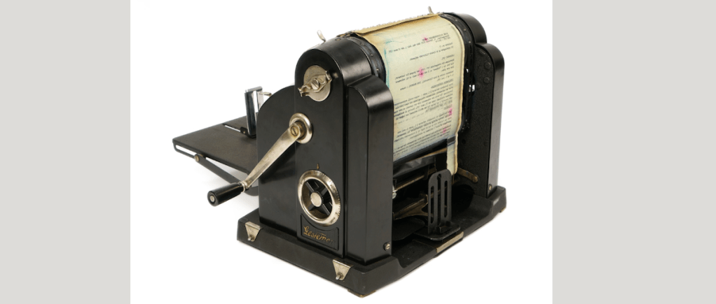 Jo, det var et et sterkt vokset papir man skrev på med skrivemaskin eller med en skarp skrivegjenstand før man festet det på valsen på en stensilmaskin. Så bestemte man antall ark man ville ha ut, og stensilen gikk rundt og rundt på valsen mens innholdet på den ble overført til ark ved hjelp av sverte. Sånn litt enkelt forklart. Datidas kopimaskin, med andre ord. Skoler og kontorer med plass på budsjettet hadde en sånn før i tida i gamle dager. Hva en skrivemaskin er? Nei, det får du finne ut av selv.