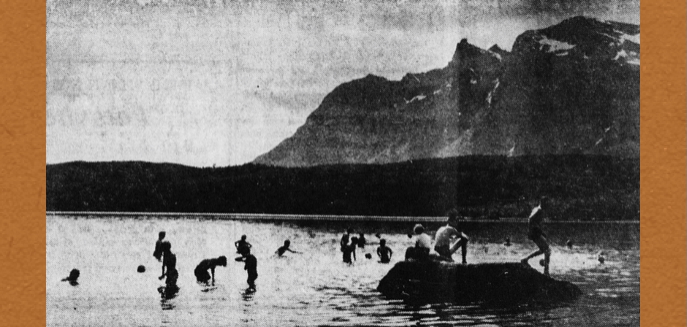 I august deltok 40 barn og voksne i et tolv dagers svømmekurs i Grovfjord. Skoleinspektør Sverre Riise og Grovfjord Fiskarlag hadde tatt initiativ til kurset, som ble arrangert av Norges Livredningsselskap. Svømming, stuping, dukking, livberging, oppliving og mange andre øvelser sto på programmet. I motsetning til et tilsvarende kurs jeg skrev om fra et annet år, var været godt og varmt under kurset. Likevel var temperaturen i havet bare 12-15 grader. Det det litt uklare bildet over er fra Harstad Tidende.