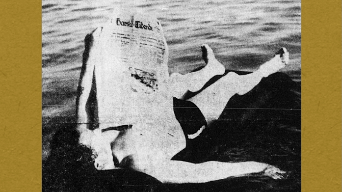 Lokalavisene rundt oss meldte om svært varme dager i starten av august 1960, med rundt 25 grader i lufta flere dager på rad. I den sammenheng meldte veimyndighetene at den tørre sommeren var i ferd med å ødelegge dekket på de fleste veiene i Sør-Troms og Ofoten. Mannen på det litt uklare bildet over fant – i mangelen på mobiltelefon – en velegnet måte å lese dagens lokalavis. Flytende på en luftmadrass ved ei strand utafor Harstad et sted. Mens han andøvde med høyrearmen.