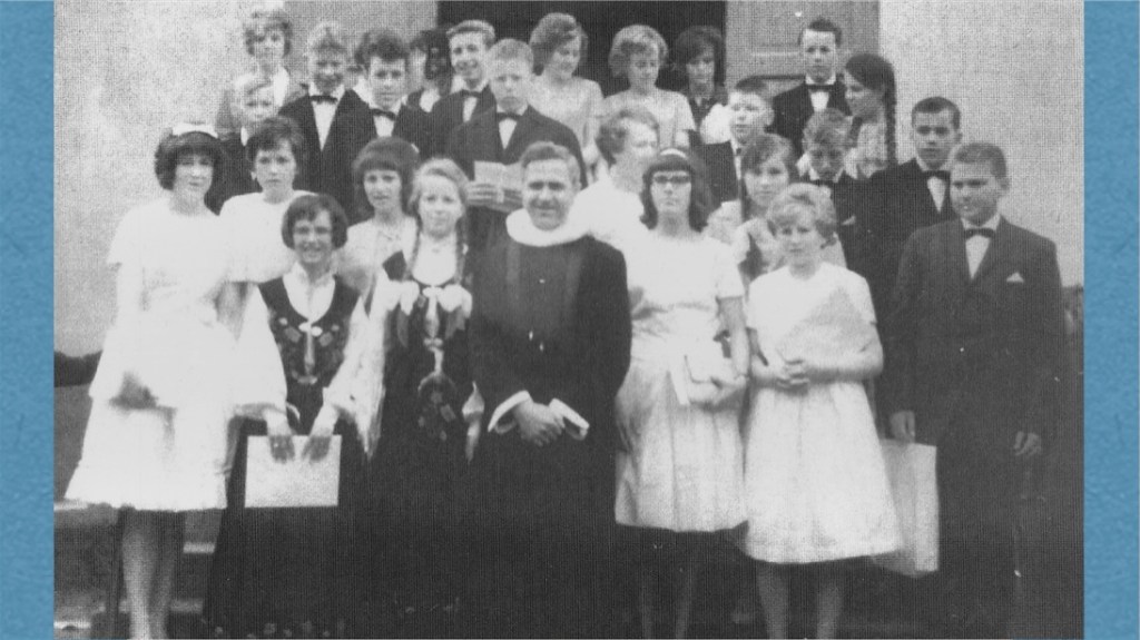 Søndag 22. august 1965 var det duket for konfirmasjon i skolekapellet i Grov. 16 jenter og 11 gutter fra hele Grovfjord – fra Stræte til Minde – ble konfirmert av sogneprest Ravn Madland. Lokalavisa meldte om en fin søndag med strålende vær og mye folk i og utenfor skolekapellet. Bildet over fra Skånland-kalenderen 2015 er brukt med tillatelse fra bildets eier Arne Bertheussen, som var konfirmant det året.
