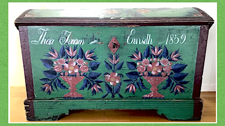 Mor til oldefar døde da han var 14 år. Da han hadde fylt 18, reiste han hjemmefra. Turen gikk nordover til Helgeland. Med seg på turen hadde han ei kiste med eiendelene sine. Den arvet jeg i 1970 etter mine besteforeldre. Bak navnet på kista har jeg sett at det står et annet navn. Og takket være et dataprogram og et slektstre, klarte en bekjent å få fram navnet ut fra et bilde av kista. Det viser seg at kista har tilhørt søstera til Tore sin morfar, og må dermed være nærmere 250 år gammel. Kanskje eldre, hvis også hun hadde arvet den.