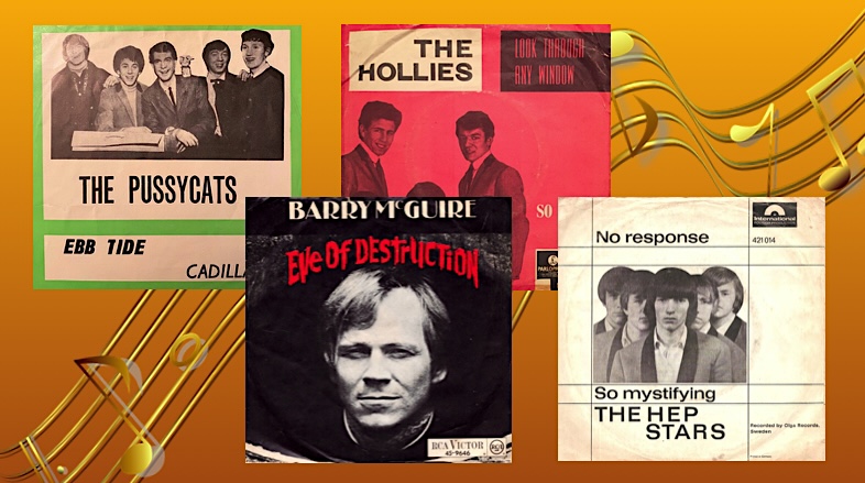 Jeg avslutter innlegget med amerikaneren Barry McGuire. Han kom inn på VG-lista topp ti midt i oktober, og brukte bare ei uke til å innta tredjeplassen bak The Pussycats. Låten var Eve Of Destruction som ble skrevet av P. F. Sloan, en amerikansk låtskriver med mange hits for mange artister på samvittigheten. Barry McGuire sin versjon av låten gikk helt til topps på internasjonale salgs- og hitlister.
